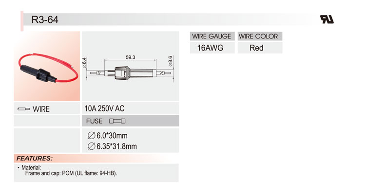 6*30拉線盒保險(xiǎn)絲座 R3-64 UL CSA 10A250V