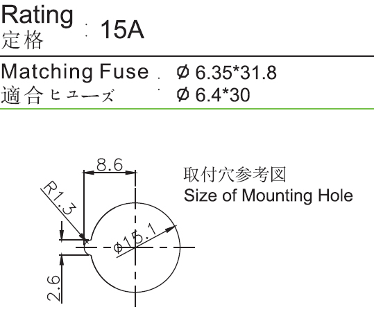 6*30 面板安裝保險(xiǎn)絲座 FH-001AF UL CSA 15A250V