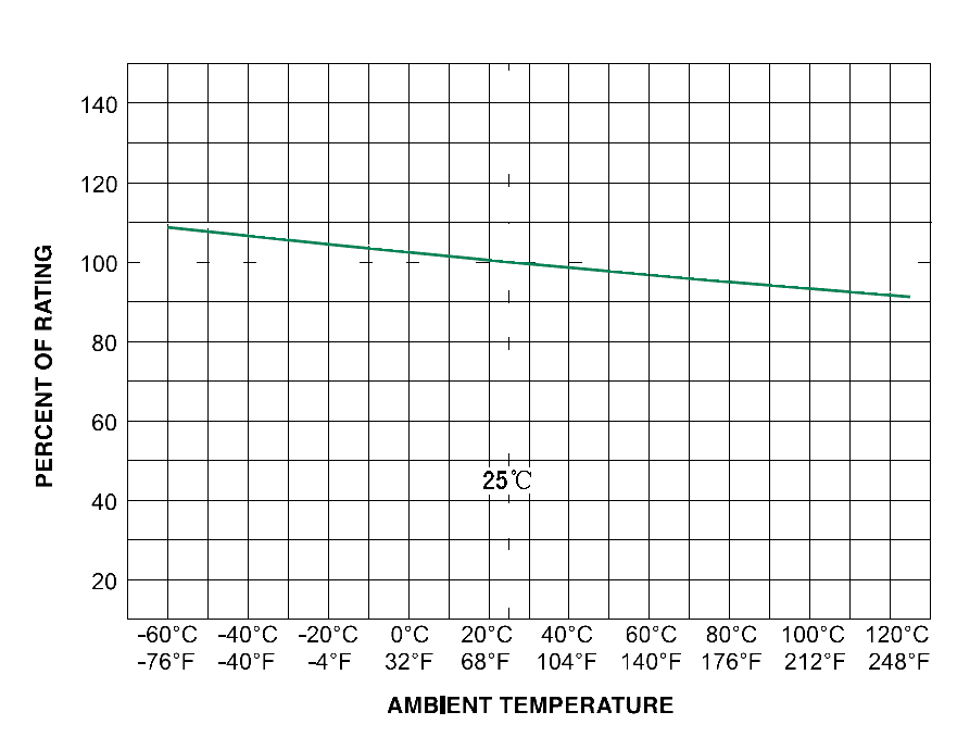 Notes: - l2t calculated at 8ms. Resistance is measured at 10% of rated current, 25oC Temperature Derating Curve
