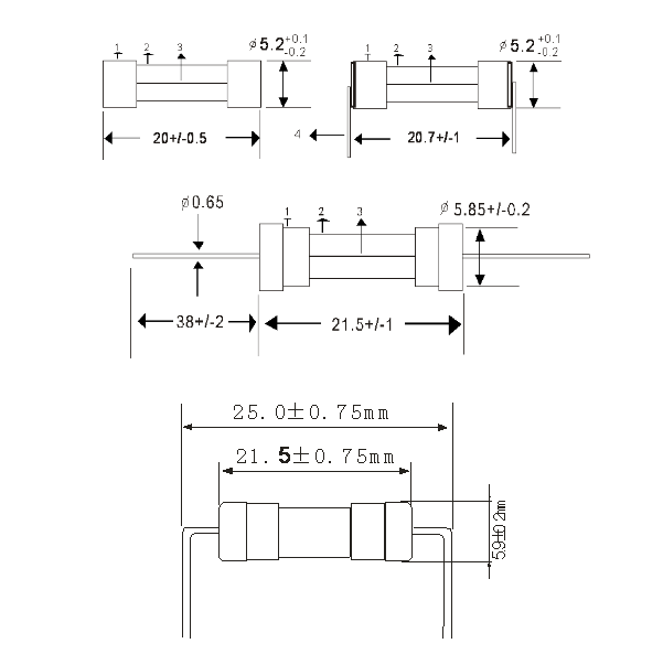 5GTU     2A      125V/250V                1)系列號  Part  Number