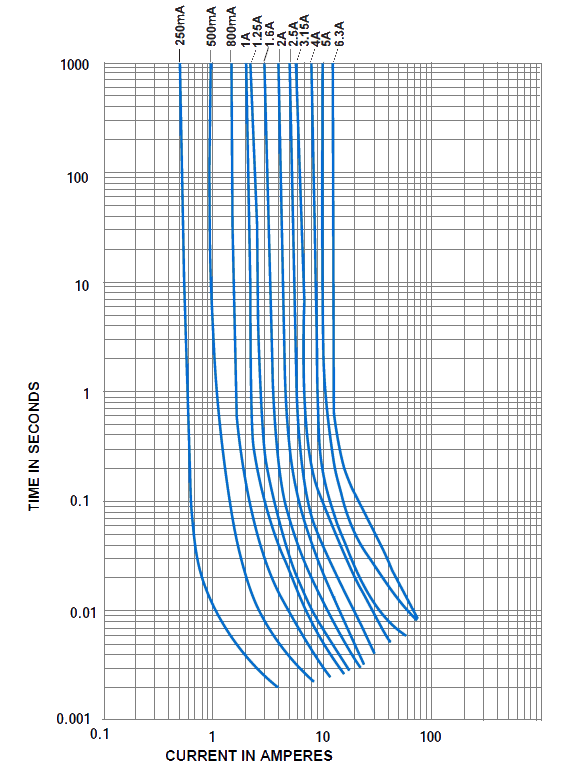 4.外觀及形狀 APPEARANCES AND CONFIGURATION 4-1外觀:不應(yīng)有破碎、明顯的汙斑 Appearances:There shall no fragmentation and of remarkable blotch. 4-2形狀:帶腳的保險絲 Configuration:Axial Leaded Fuse. 5.物理特性 PHYSICAL CHARACTERISTIC 5-1 拉力測試 Tensile test 沿端子的軸向施加10N的拉力,持續(xù)1分鐘。 Keep pulling the cap of the fuse with 10N at axial direction for 1 min. 6.電氣特性 ELECTRICAL CHARACTERISTICS 熔斷/電流特性: Pre-Arcing Time/Current Characteristic a、Breaking capacity(分斷能力)(Time Lag )