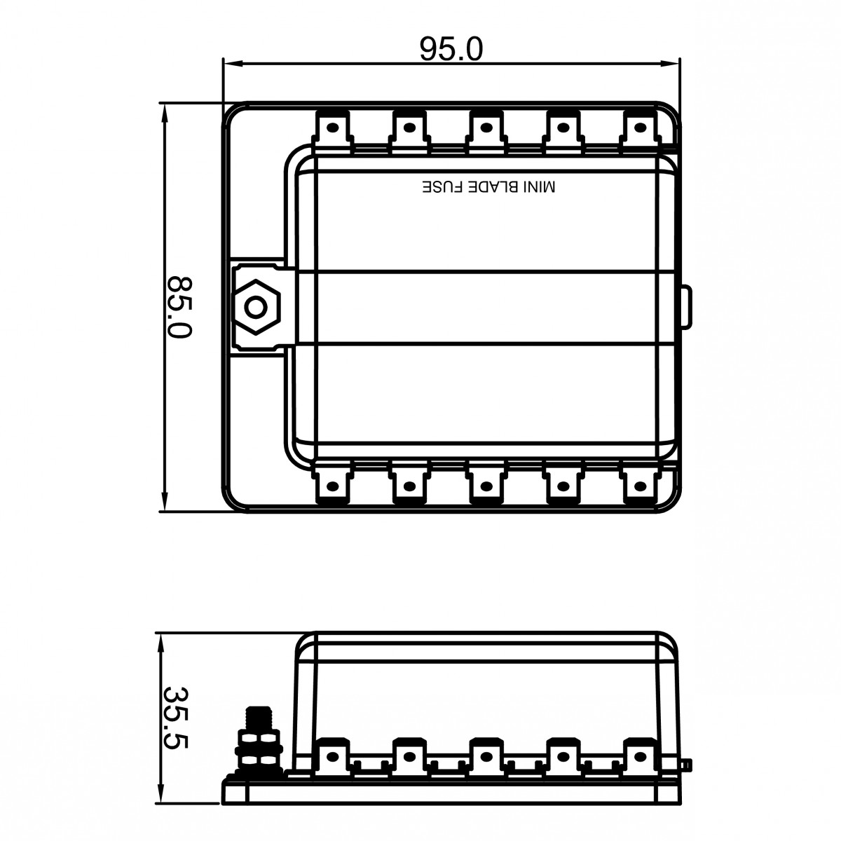 1.適合船舶、房車或外部裝修類型應(yīng)用的保險絲盒,透明防護罩防水防塵、污垢進入 2.保險絲損壞時,紅色 LED 指示, 負(fù)極端子臺為負(fù)極收集電路提供公共位置按下閂鎖即可輕鬆打開